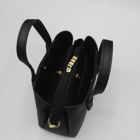 The Sophie BLACK Mini Tote Bag, with its plain texture, matt black tone, and elegant handles, is a stylish and versatile accessory for any occasion.